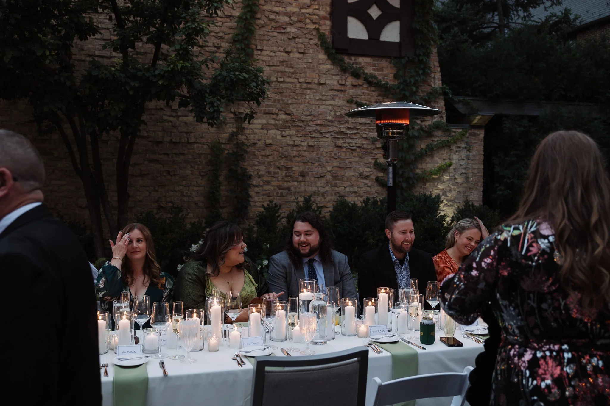 intimate backyard wedding dinner in a courtyard